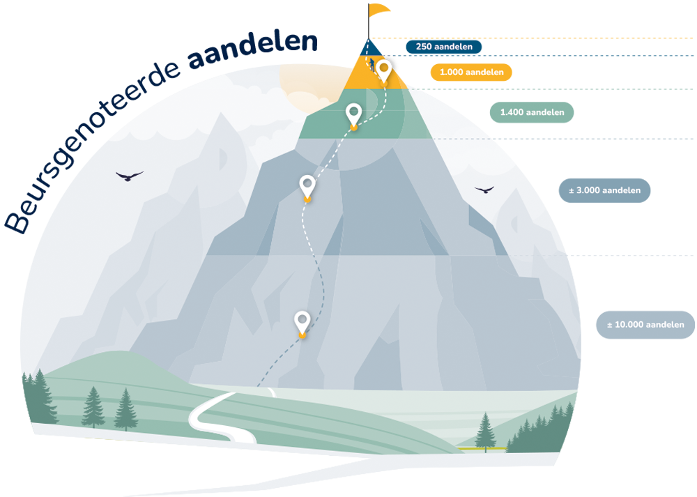 Het gaat om onze aandelen in ontwikkelde en opkomende markten. Dus van bedrijven uit Europa, de Verenigde Staten, Australië, Japan, Zuid-Korea, India en enkele andere landen. In de komende jaren willen we hetzelfde doen voor de andere categorieën waarin we beleggen.